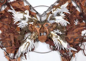 Spanning across the two venues, this new body of work weaves together complex material histories, explores the ecology of local landscape, and continues the artist’s interest in queering the archive. Rowlinson merges the sacred and profane, drawing on religious and folkloric imagery such as angels, demons and green men, and combining them with contemporary queer fashion and fetish references.