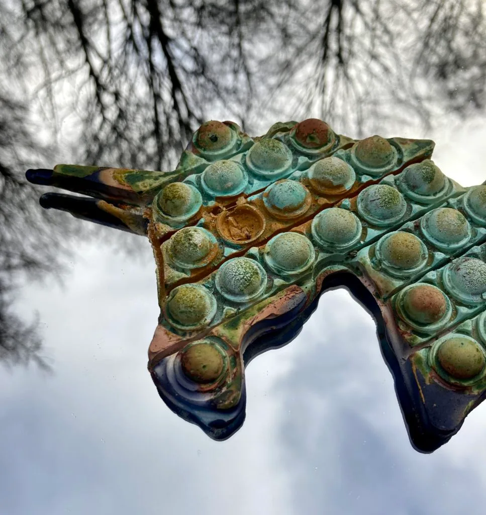 Carter was recently awarded an Arts Council England grant (Developing Your Creative Practice) to research alternative printmaking processes that may allow her to work towards an ecologically engaged practice. Throughout this research, Carter has been largely drawn to photography and its endless opportunities to play with light and surface, time and place, harnessing an alchemy of light-processing plants and materials found deep in the ground where she lives. Along with making inks from plants, excavating clay from reservoirs, coal and ochre from local mines, she has tried to confront the ubiquitous plastic spaces from the inescapable toxic, consumerist culture her children are exposed to within their environment.