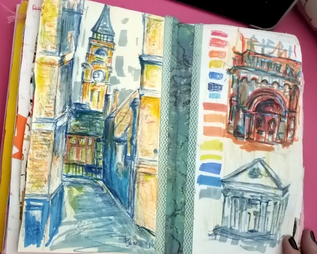 This course helps establish a sketchbook habit and build confidence with drawing and journaling using a range of media including graphite, pens, pencils, colouring pens, oil pastels and mixed media collage.