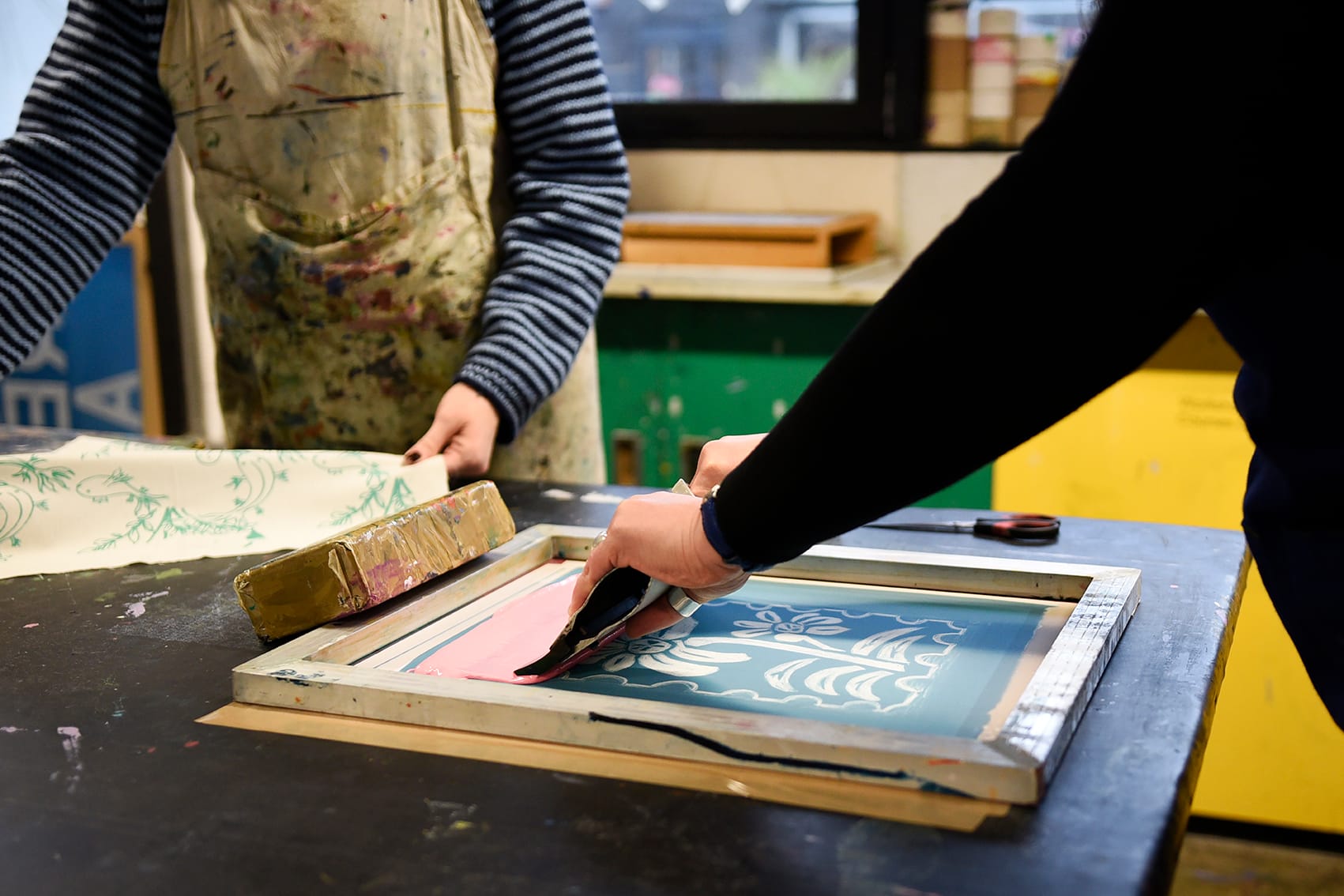 Get creative in our fully equipped professional print studio and create your own stunning printed fabrics while learning the process of textile screen printing.
